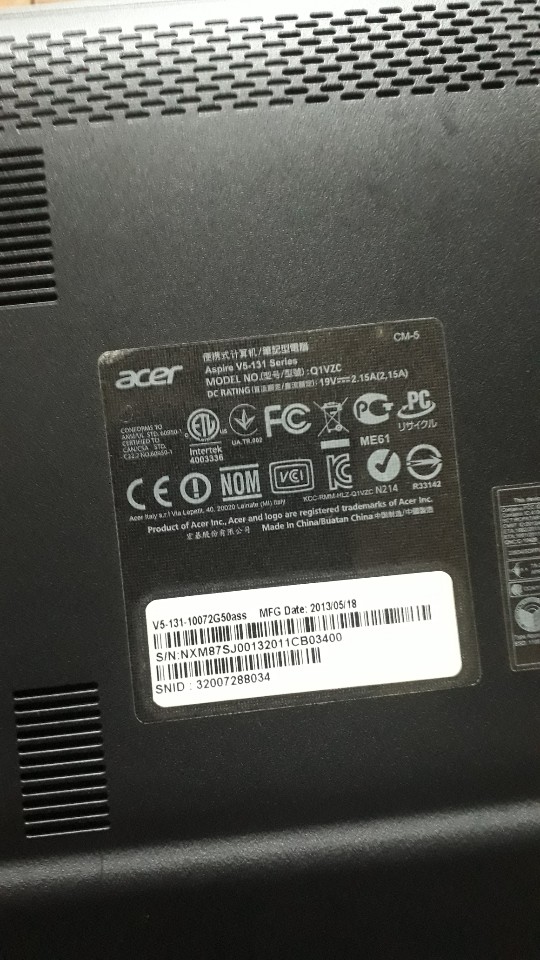 노트북 모델명 : ACER ASPIRE V5-131 SERIES 10072G50ASS [Q1VZC]
