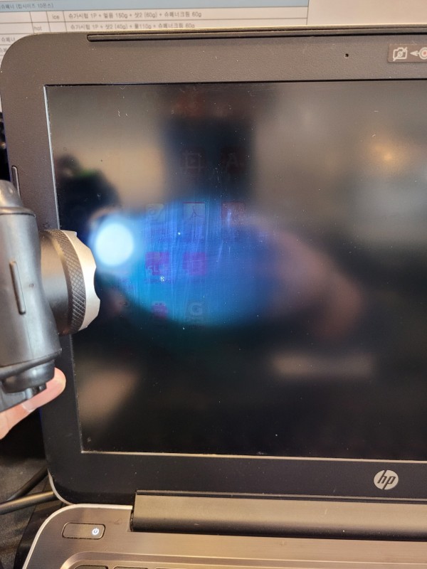 화면에 후레쉬를 비춰야 희미하게 보일 정도입니다