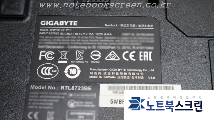 기가바이트 노트북 모델명은 P15F V3 이구요 액정 재고 항시 보유모델이기 때문에