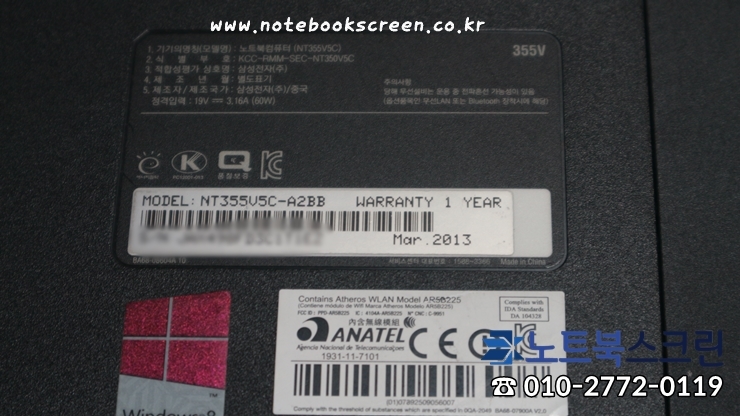 삼성노트북 NT355V5C-A2BB 모델입니다. 문의하실 때, 노트북 모델명을 알려주시면 정확한 수리비용 안내해드려요 : )