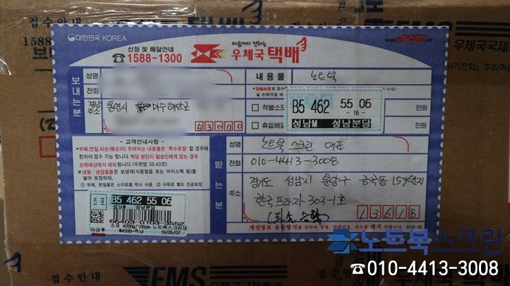 이중 포장 후 다시 경남통영으로 당일발송 해드렸습니다. 액정교체 작업시간 15분 정도 걸렸어요