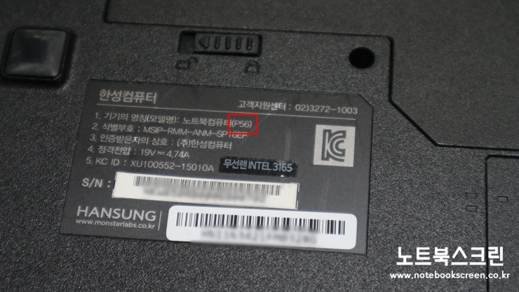 노트북액정수리비용은요.. 노트북 뒷면에 나와있구요 한성 P56 이라고 말씀해주심 됩니다.