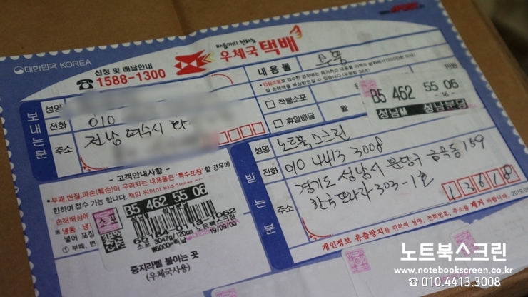 택배로 보내주시면 노트북스크린이 택배 받는 당일 액정교체 후 당일 발송합니다.