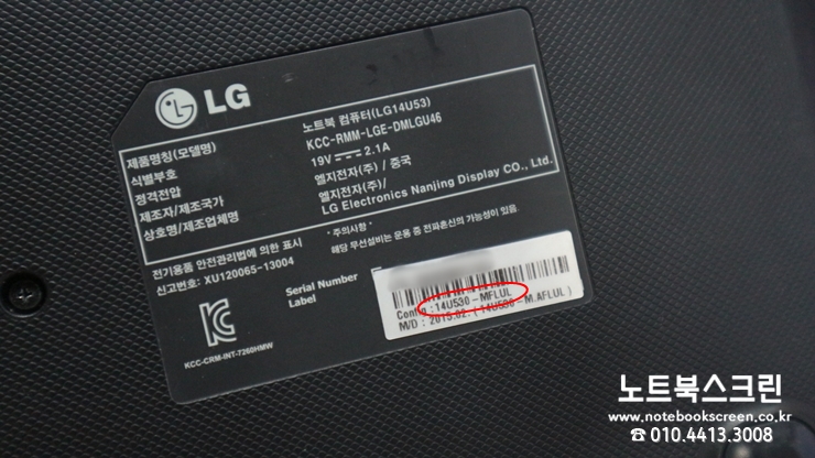 LG 노트북이고요 모델명은 14U530-MFLUL 으로 노트북 뒷면에 표기되어 있습니다.