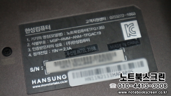 [방문-수리완료] 수지동천역 한성노트북액정수리 TFG13S 노트북액정화면깨짐 당일교체완료