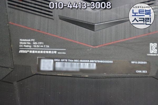 충남서산 사설노트북수리 MSI GF75 Thin 9SC, MS-17F1 노트북액정교체 화면깨짐