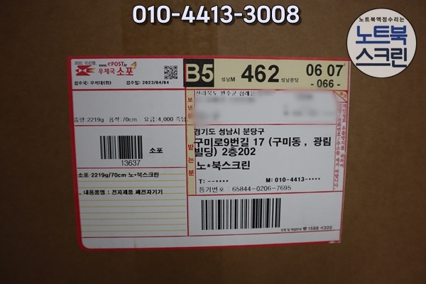 노트북 화면이 파손된 상태였습니다.