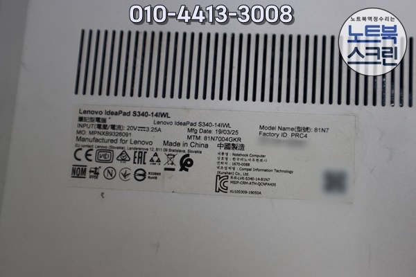 [방문-수리완료] 인천레노버노트북수리 당일교체 Lenovo ideapad S340-14IWL 81N7 화면깨짐