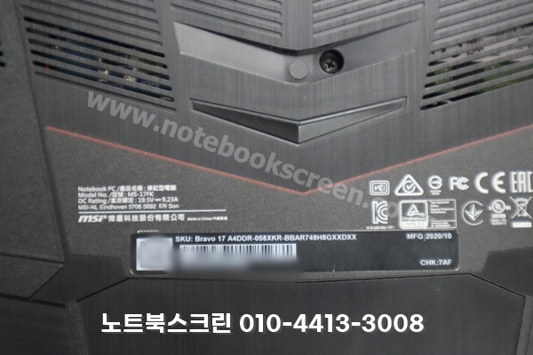 MSI노트북액정수리 전문업체 잘하는 사설센터 MS-17F4 / Bravo 17 A4DDR 패널교체