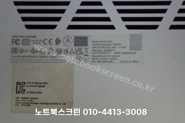 인천 연수구 송도동 노트북수리 Lenovo ideapad Gaming 3 15ARH7 액정깨짐 화면교체