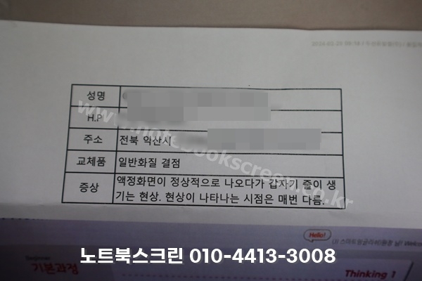 [택배-수리완료] 전북 익산시 팔봉동 LG 노트북 액정교체 화면세로줄 15UB470 패널고장 디스플레이교체