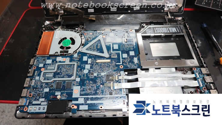 노트북 액정 분해 후 점검 해보니, 액정화면은 정상 출력되어 케이블이나, 메인보드를수리해야하는 상황이었는데요