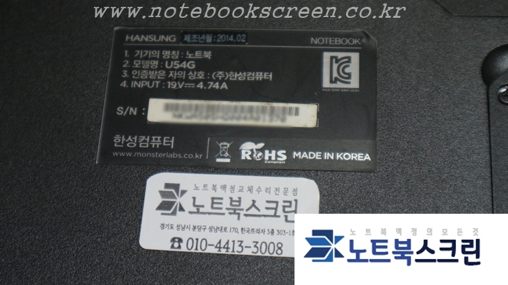 수리하게 될 노트북 모델명은 한성 노트북 U54G 모델입니다.