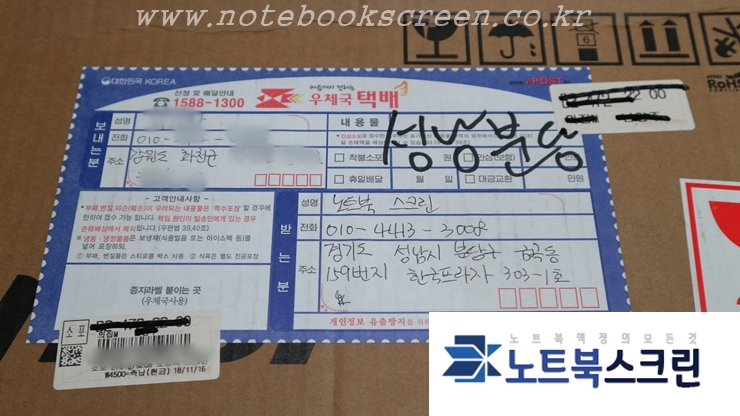 강원도 화천군에서 MSI노트북액정교체를 위해 택배로 노트북을 보내주셨어요~