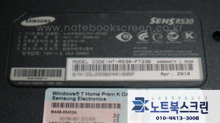 삼성노트북 NT-R530-PT33B 모델이구요 액정깨짐 증상은 새 액정으로 교체해야 합니다.