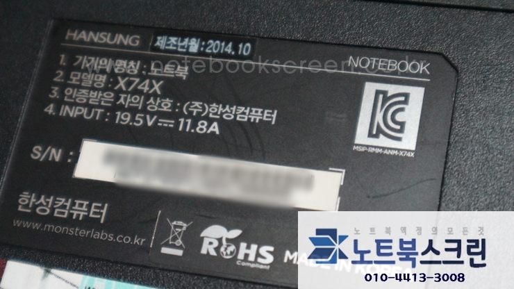 한성노트북액정교체 X74X / 액정파손 / 당일수리 / 수리시간 20분