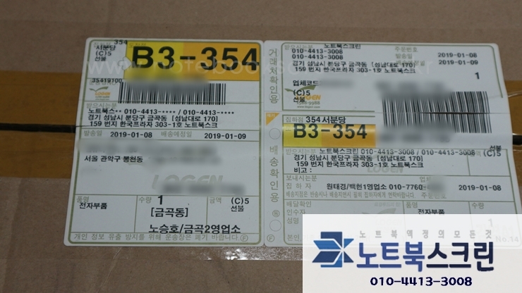 당일 노트북액정수리 완료 후 안전하게 이중포장하여 당일발송해드렸습니다