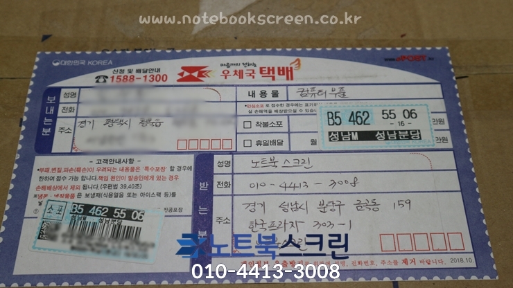 * 택배로 노트북 보내시면, 노트북스크린이 택배 받는 당일 액정교체 작업 후 당일 발송합니다.