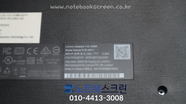 레노버 110-15IBR 노트북 액정교체 작업시간은 15분 정도 소요되었으며,