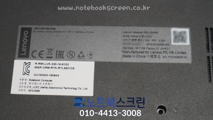 [방문-수리완료] 수원 매탄동 노트북액정교체 Lenovo 330-15ARR IPS패널업그레이드 / 당일교체 20분
