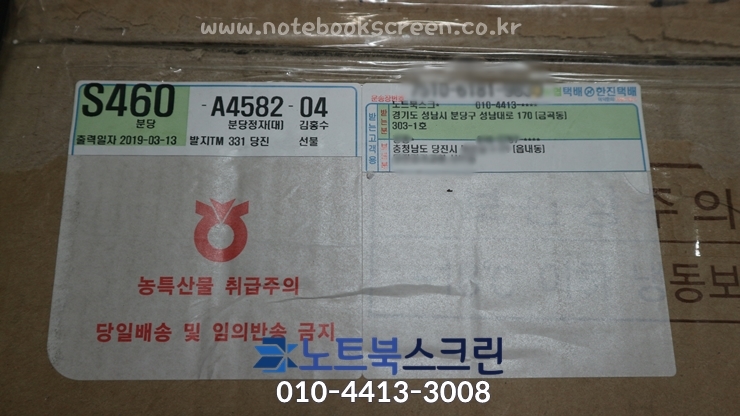 택배로 보내주실 경우, 노트북스크린이 택배받는 당일 액정수리후 안전하게 이중포장 후 당일 발송합니다!