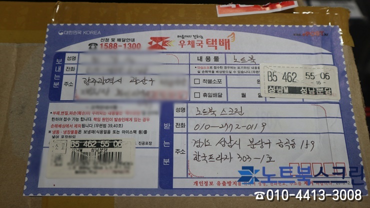 택배로 보내주시면, 노트북스크린이 택배 받는 당일 액정교체 후 당일 발송해드립니다.