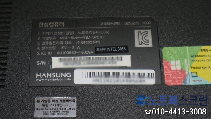 한성 노트북 U56 모델과 호환되는 액정은 상시 보유하고 있어, 매장 직접 내방하시면 20~30분정도 소요되어 당일수리 됩니다.