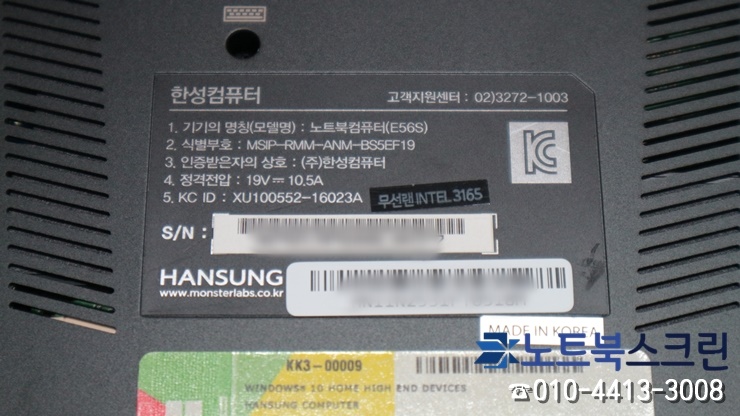 [방문-수리완료] 인천에서 사설 한성노트북액정수리 한성컴퓨터 E56S 액정파손