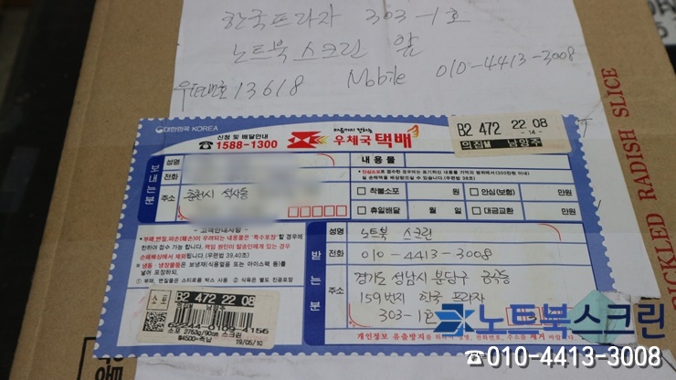 강원도 춘천시 석사동에서 택배로 보내주신 노트북입니다.