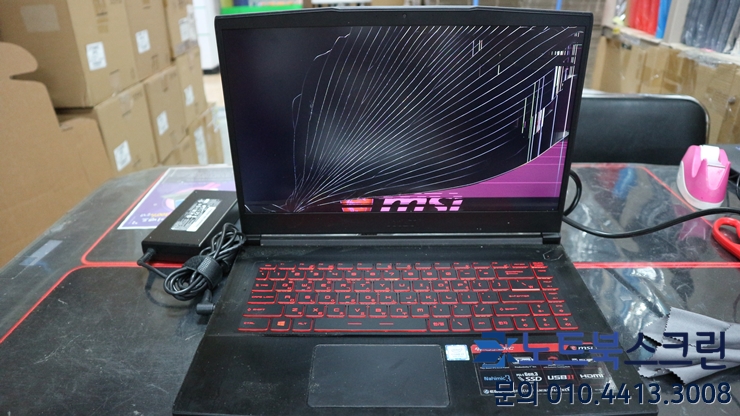 MSI 노트북 GF63 8RC 액정화면깨짐 증상으로 액정수리 작업 요청해주셨습니다