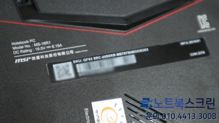 [방문-수리완료] [이천시창전동]MSI사설노트북수리 GF63 8RC (MS-16R1) 액정깨짐 / 당일교체 20분