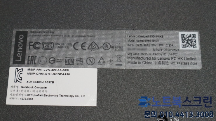 [택배-수리완료] [충남당진시]레노버노트북수리 330-15IKB 액정파손 / 당일교체 후 당일발송