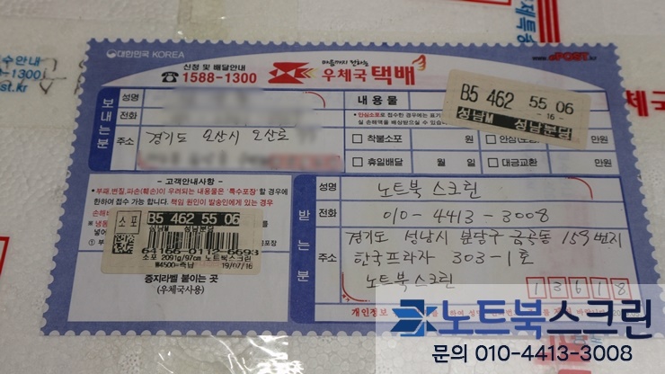 택배로 보내주시면 - 노트북스크린이 택배 받는 당일 액정교체 작업 후 당일 발송합니다 (1~3일안에 수령)