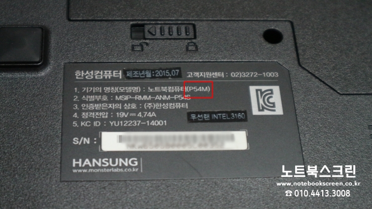 [경기도안산]한성컴퓨터 노트북액정교체 P54M 액정불량 (빨간화면,잔상)