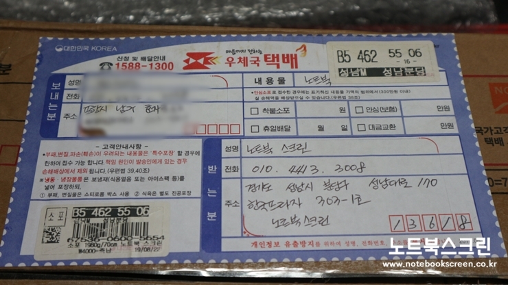 경상북도 포항시 남구 효자동에서 택배로 보내주신 노트북입니다
