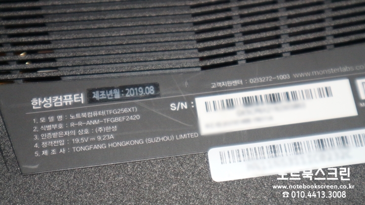 [용인처인구고림동]한성노트북액정수리 TFG256XT 액정깨짐 - 당일교체