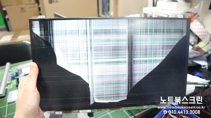 액정이 파손되었는데, 화면이 나오지 않아요. 액정만 분리하여 테스트 해보니 액정이 깨져있어요~