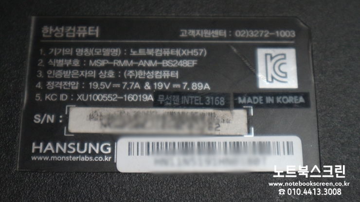 대전대덕구대화동노트북액정수리 XH57 한성노트북액정파손 패널교환