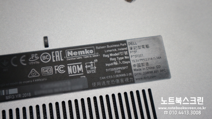 [택배-수리완료] 전북장수군노트북액정수리 DELL P75F001 노트북액정화면깨짐 당일교체 후 출고