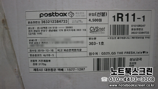 택배로 보내주시면, 노트북스크린이 택배 받는 당일 액정교체 후