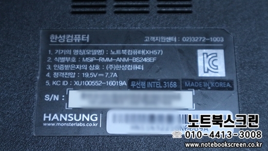 [택배-수리완료] 마포구서교동노트북액정수리 한성노트북 XH57 화면하얀얼룩 새액정 교체