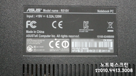신둔도예촌노트북액정수리 ASUS R510V (R510VX-DM498) 모니터화면깨짐수리