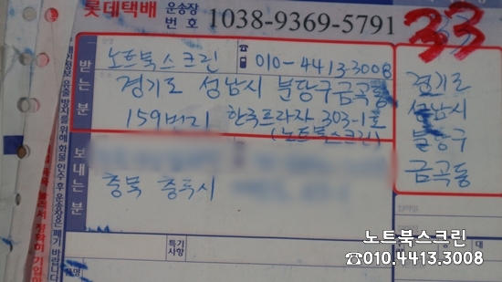 충북 충주에서 노트북 액정화면이 깨져 택배로 액정수리 보내주셨네요