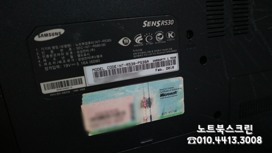 충남천안서북구 삼성노트북액정교체 NT-R530-PS3SA 노트북액정깨짐수리