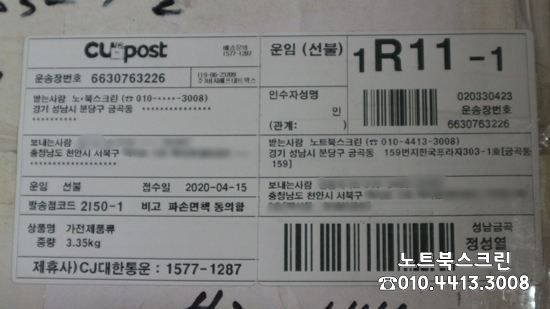 [택배-수리완료] 충남천안서북구 삼성노트북액정교체 NT-R530-PS3SA 노트북액정깨짐수리