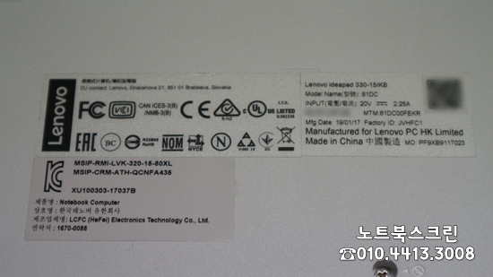 강남역 사설 레노버 노트북액정교체 Lenovo ideapad 330-15IKB 패널깨짐