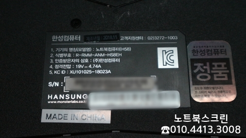 [방문-수리완료] 수원우만동 노트북액정수리 한성노트북 H58 노트북화면깨짐 당일교체