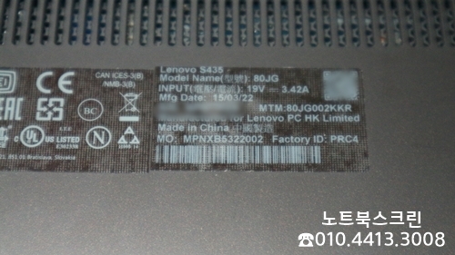 [택배-수리완료] 전북익산 레노버 노트북액정수리 Lenovo S435 80JG 노트북패널파손 당일교체