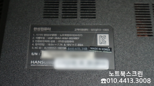 [방문-수리완료] 광교 한성노트북액정수리 XH57 한성노트북 액정파손깨짐 당일교환