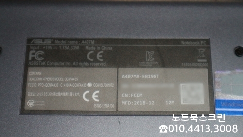 인천 부평구 청천동에서 택배로 보내주신 에이수스 노트북 A407M-EB198T 모델입니다.